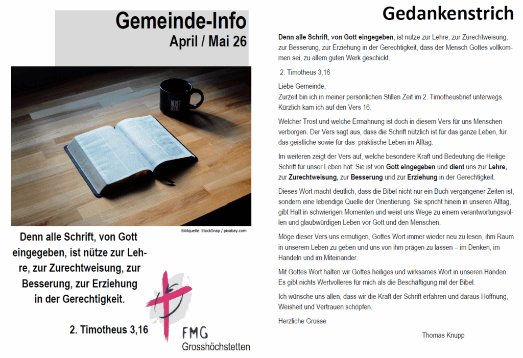 Gemeindebrief April & Mai 2026